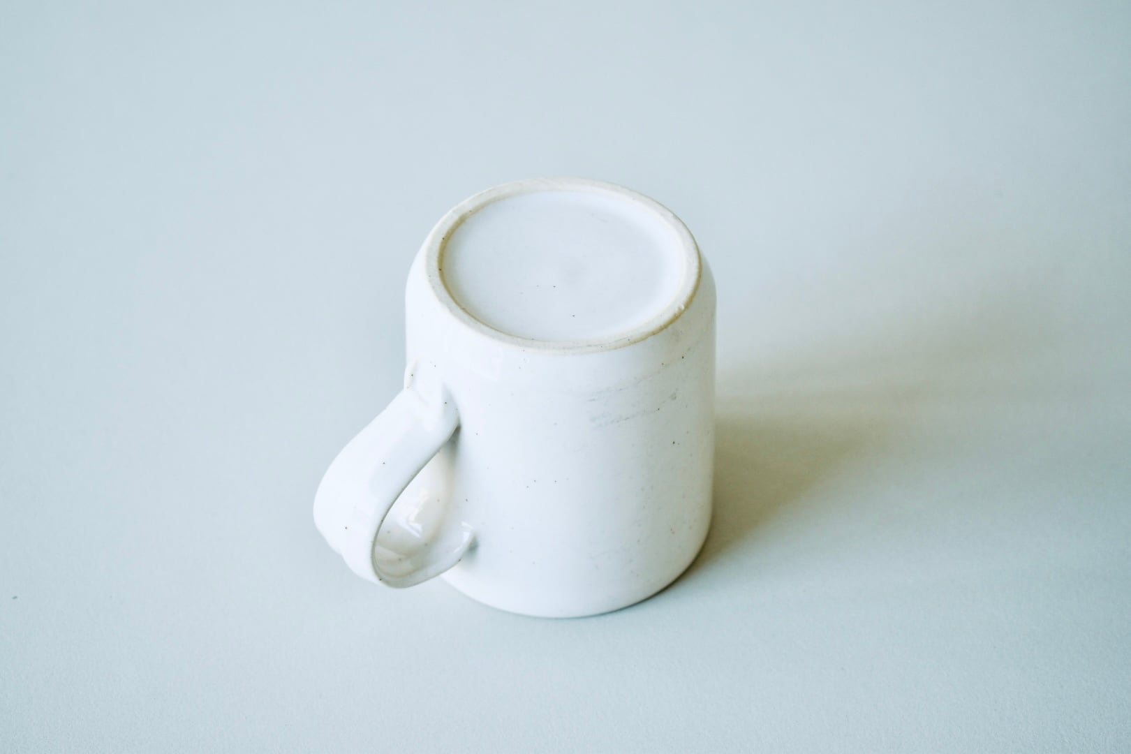 Seenat oy にて生産されたコーヒーカップ。取手下部には、工房のスタンプが型押しされている。学生時代に師を仰いだ Salmenhaaraの影響を感じるフォルムデザイン。